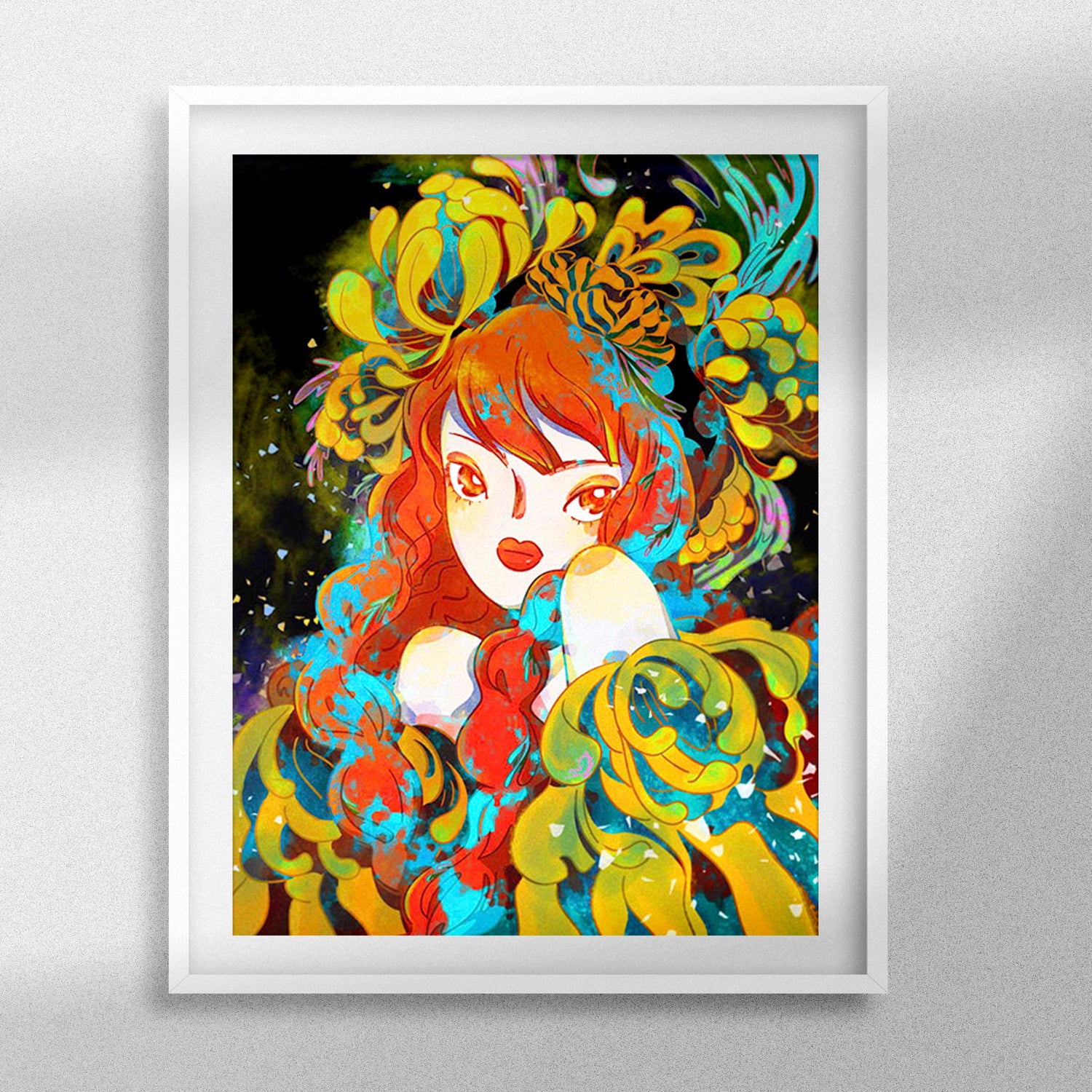 "Be Gorgeous Beauty" wurde von einem Freund inspiriert I letztes Jahr bei der Arbeit kennengelernt. Sie hat helle, mutige und entschlossene Augen, genau wie schöne Blumen. Die Stadtblume meiner Heimatstadt ist die Chrysantheme, die Integrität symbolisiert, also habe ich dieses schöne Mädchen mit der Chrysantheme kombiniert. Das Mädchen trägt eine Chrysanthemenkrone und ist in Chrysanthemenkostüme gekleidet. Die Sterne um das Mädchen symbolisieren Romantik und Freiheit. Ich hoffe, die leuchtenden Farben bringen eine schöne und optimistische Stimmung, eine glückliche und positive Einstellung zu Ihrem Leben.