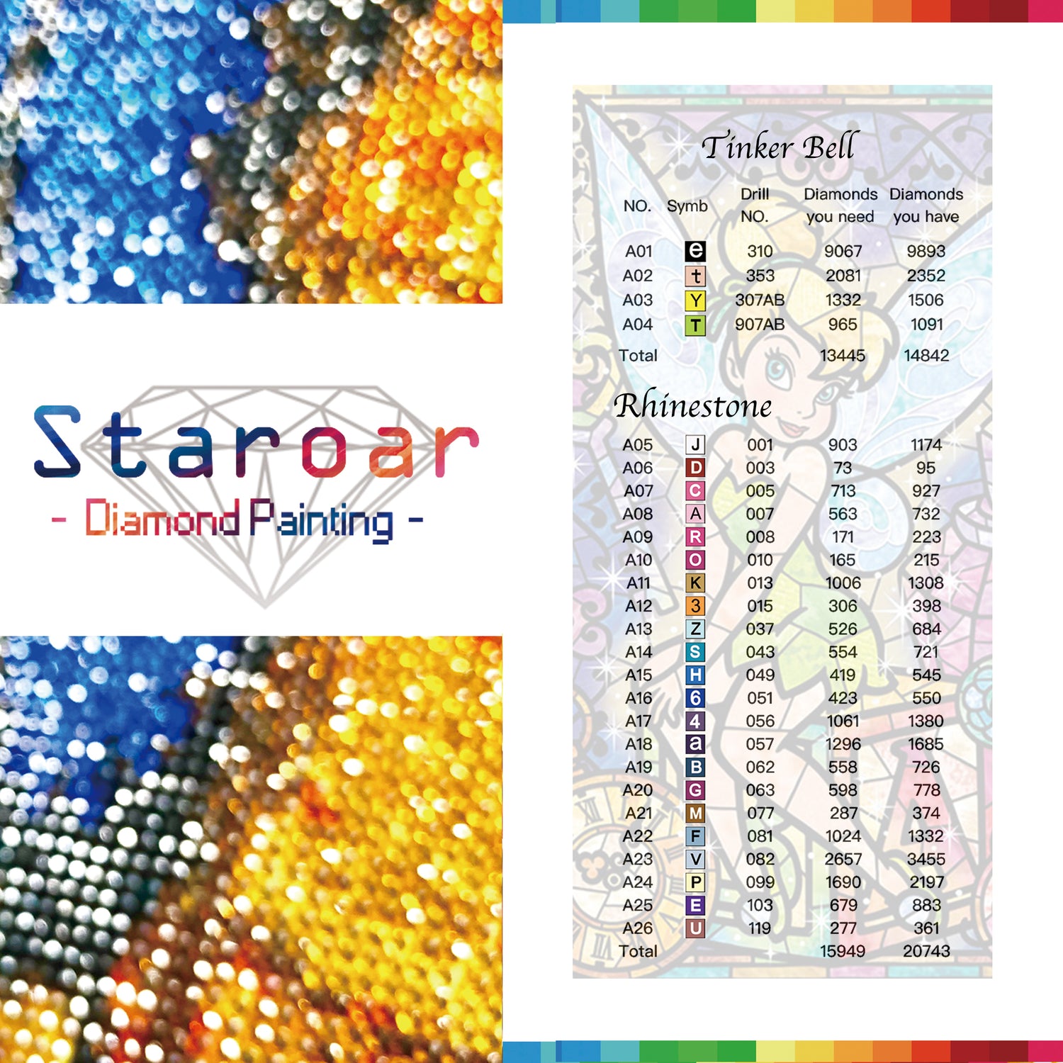 26 Farben Vollbohrer mit rund/AB mit Strass-Diamantbemalung.