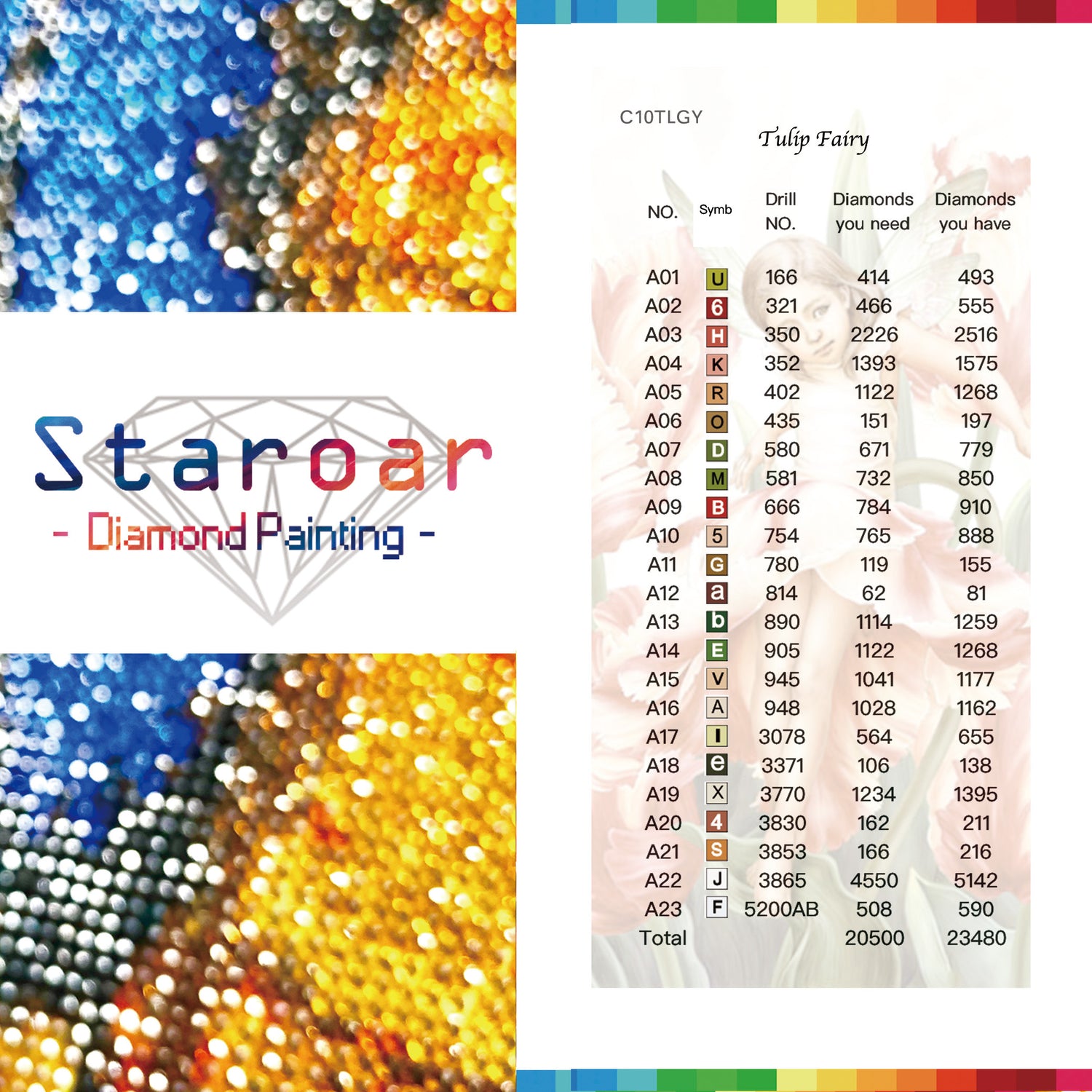 24 Farben Vollbohren Rund mit AB Diamantmalerei.