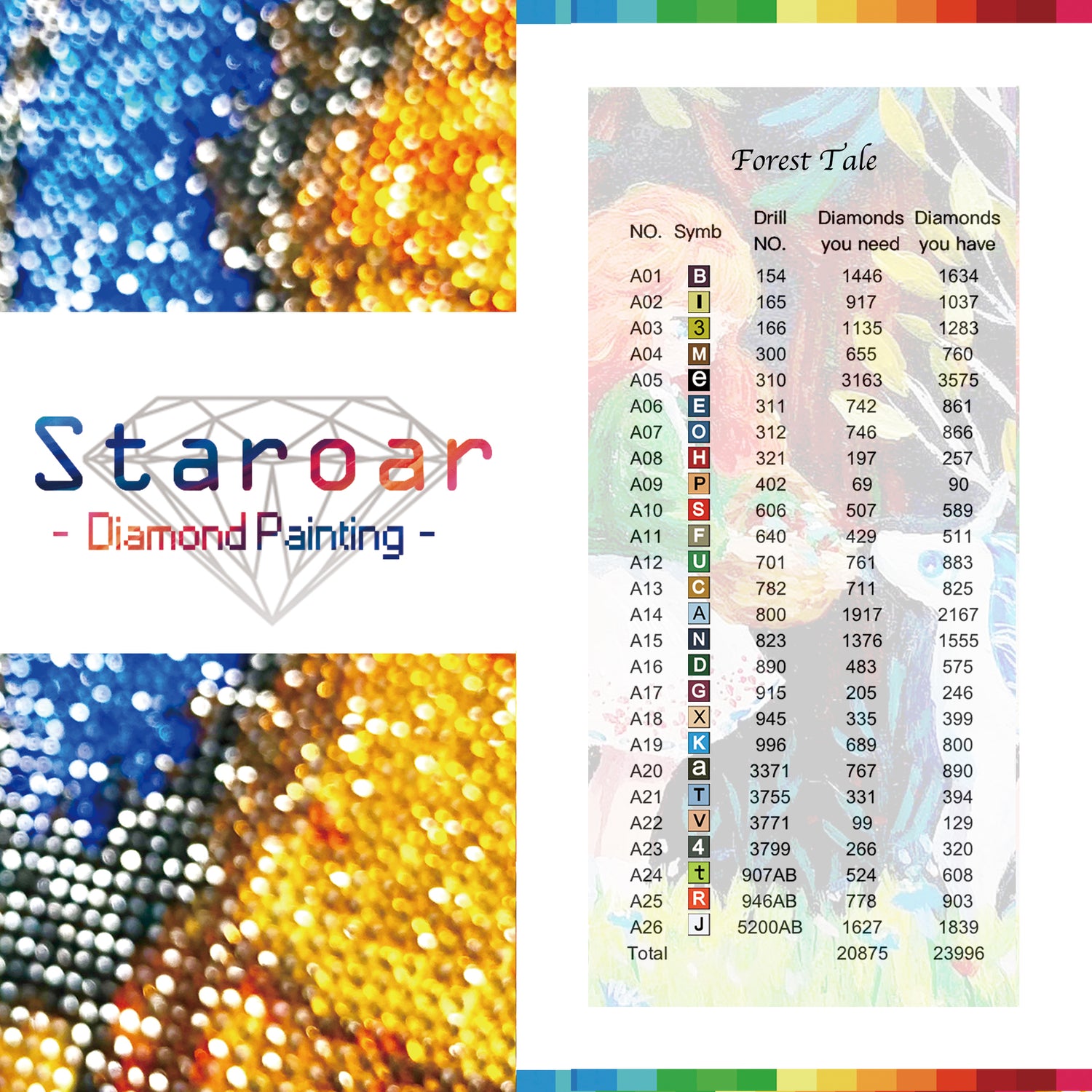 26 couleurs Perceuse complète Ronde avec peinture au diamant AB.