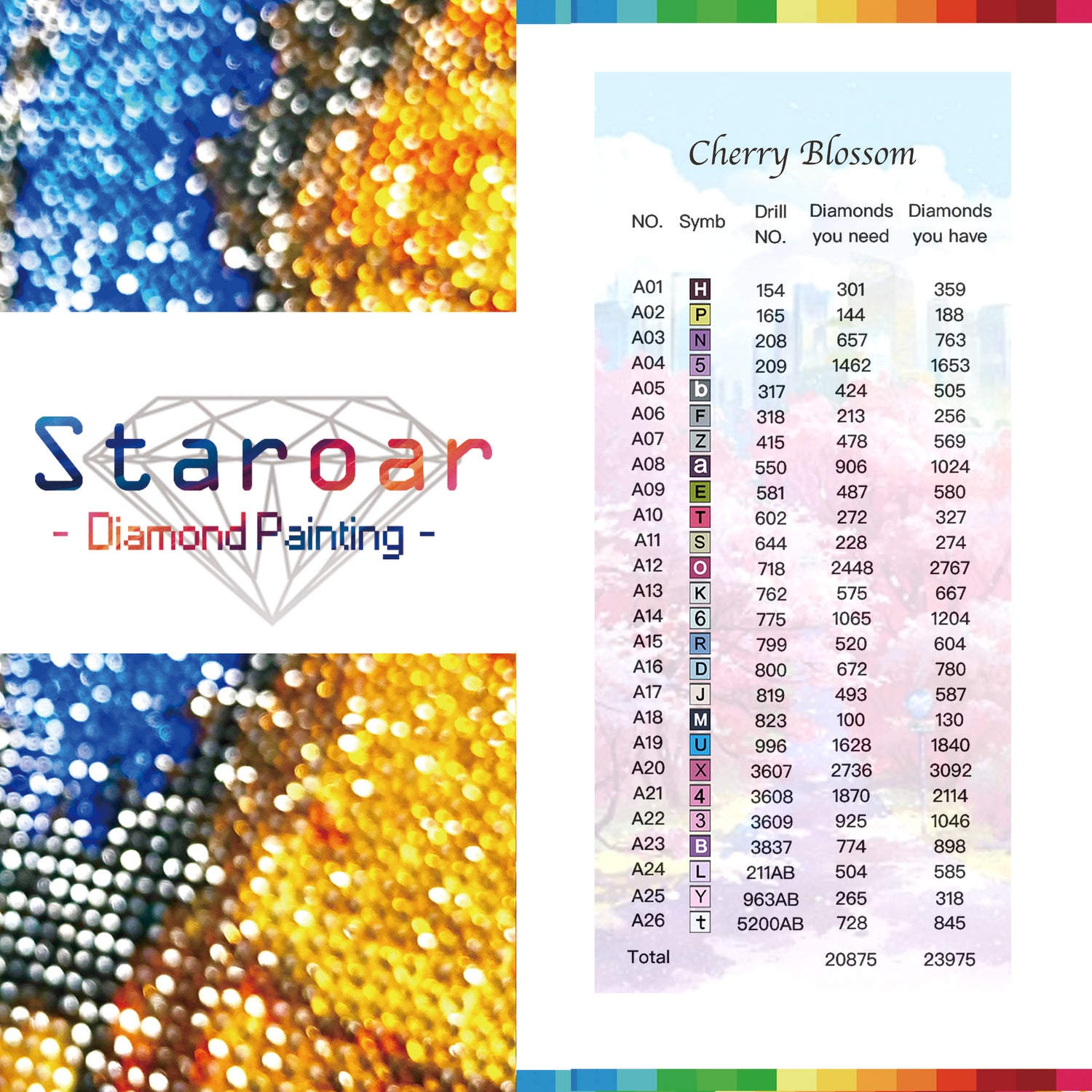 26 couleurs Perceuse complète Ronde AB peinture au diamant.