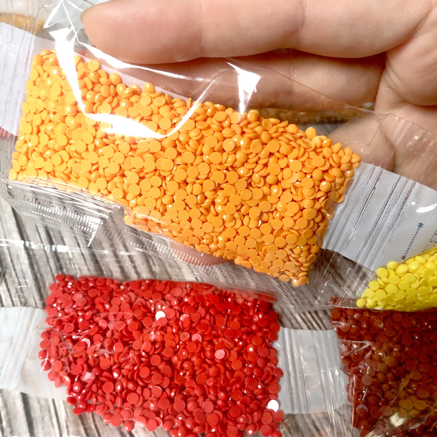 Diamants en résine colorée (différentes couleurs dans des sacs étiquetés)