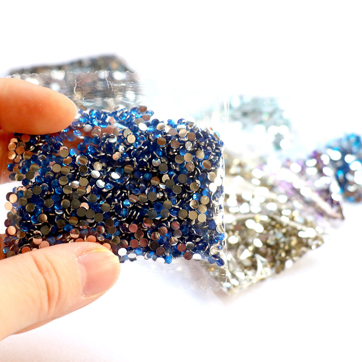 Diamants en résine colorée (différentes couleurs dans des sacs étiquetés)